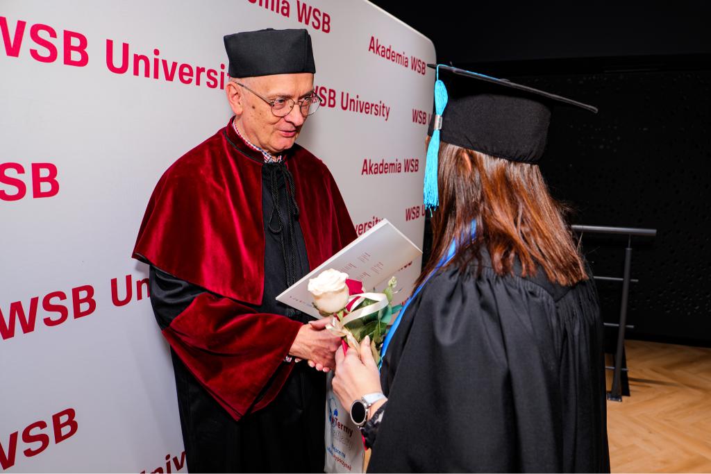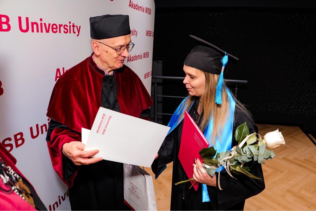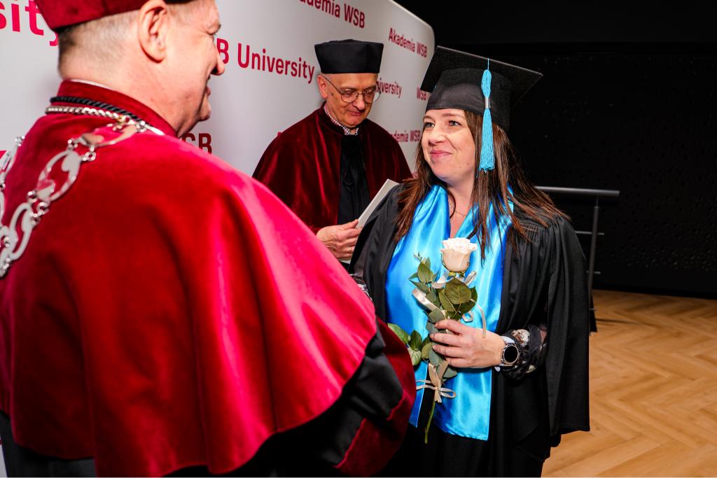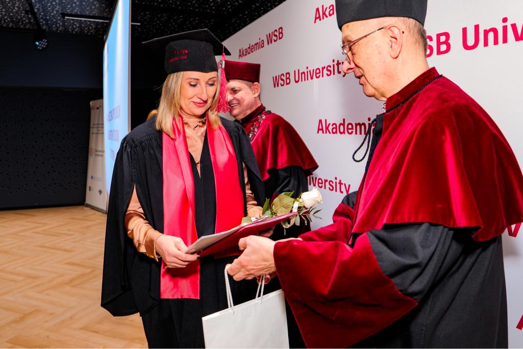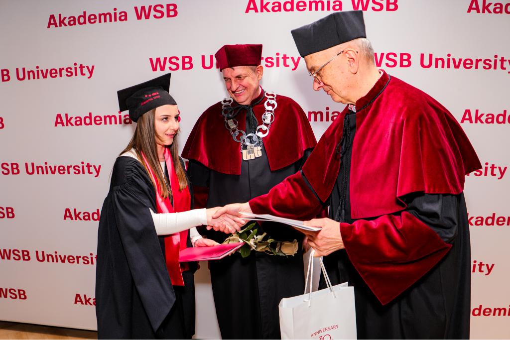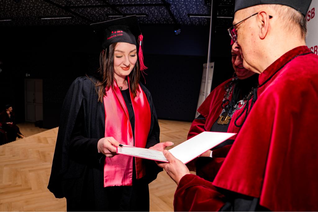 W trakcie gali szczególnie uhonorowano absolwentów, którzy osiągnęli najwyższe wyniki w nauce oraz przygotowali wyróżniające się prace dyplomowe. W roku akademickim 2025/2026, na wniosek promotorów i recenzentów, Rektor Akademii WSB prof. Zdzisława Dacko-Pikiewicz przyznała wyróżnienia łącznie szesnastu absolwentom.