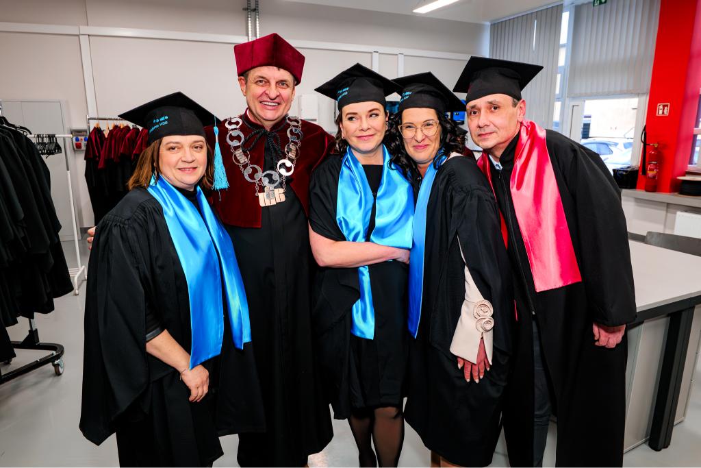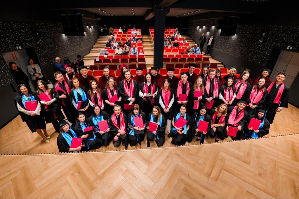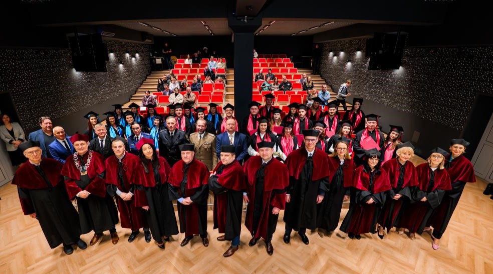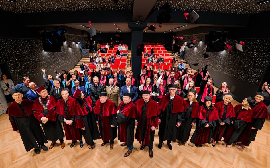 Zwieńczeniem uroczystości było wspólne pamiątkowe zdjęcie absolwentów, podczas którego – zgodnie z akademicką tradycją – w powietrze poleciały birety.