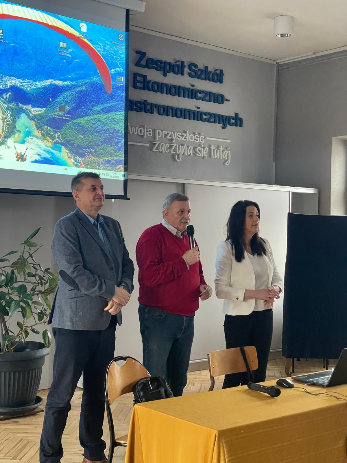 Uczestników spotkania powitał Adam Zoń, Dyrektor Zespołu Szkół Ekonomiczno-Gastronomicznych w Żywcu, podkreślając znaczenie współpracy szkół z uczelniami wyższymi oraz rolę edukacji w kształtowaniu świadomych postaw młodego pokolenia.