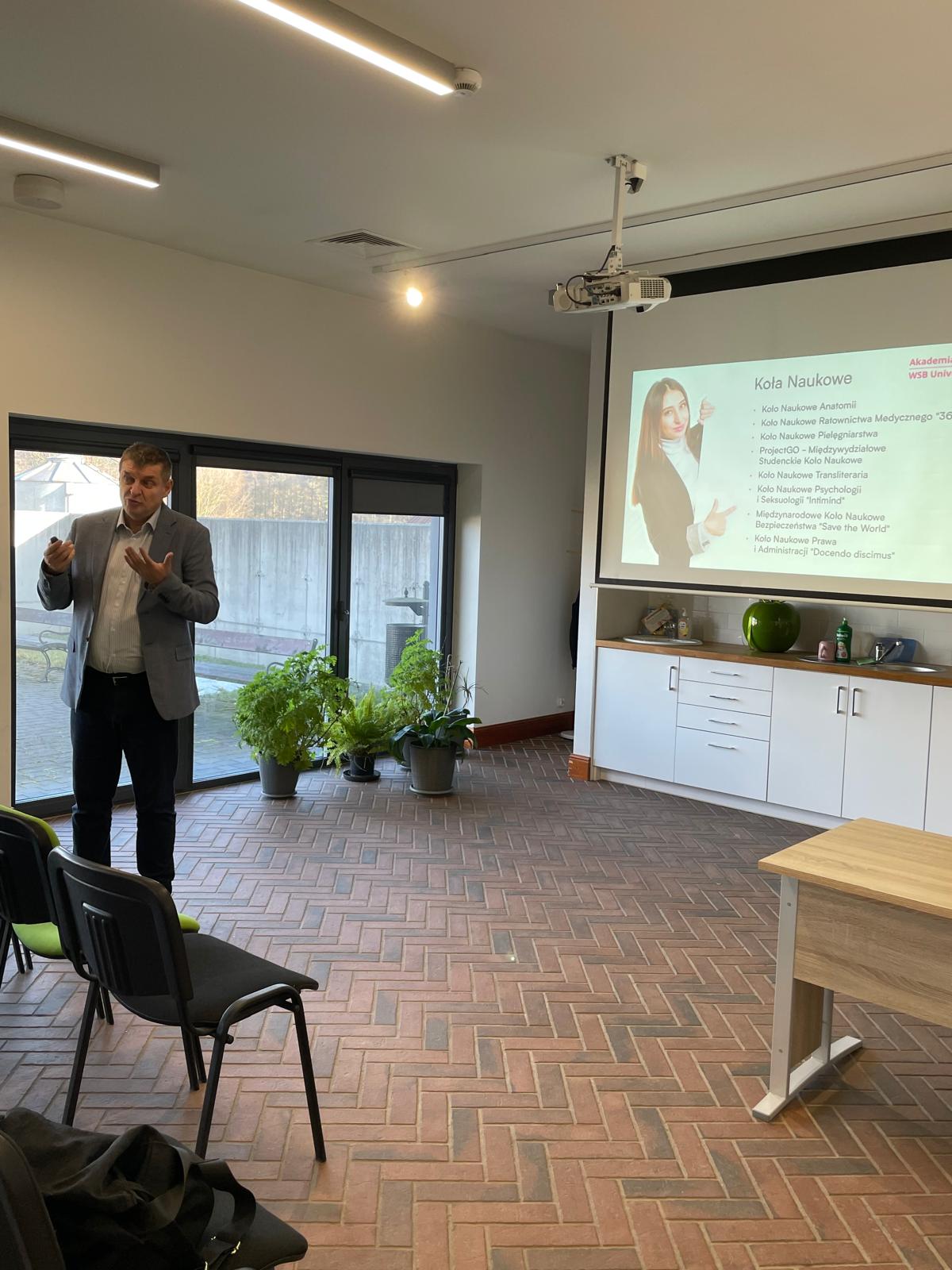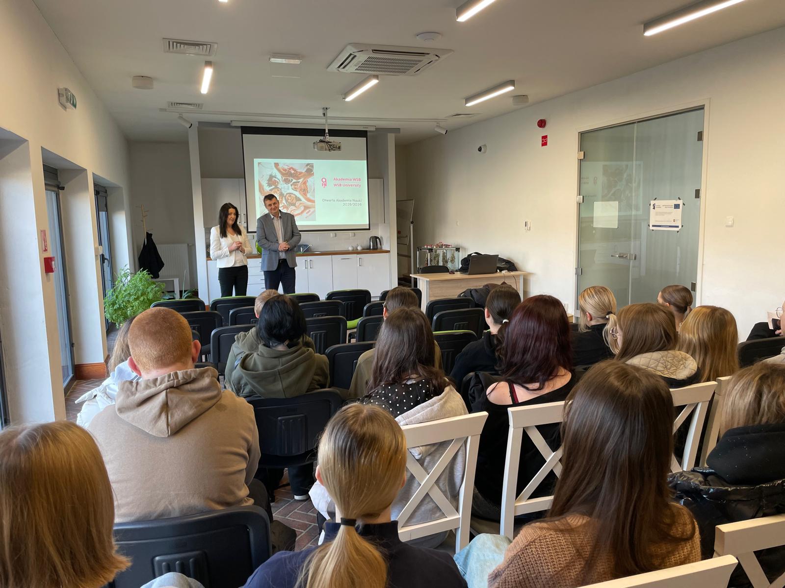 W części informacyjnej o działalności uczelni ofertę edukacyjną Akademii WSB przedstawił dr Dariusz Trojszczak, Dziekan Wydziału w Żywcu. Dr Trojszczak opowiedział o kierunkach studiów, możliwościach rozwoju oraz współpracy akademickiej z lokalnymi szkołami — podkreślając praktyczne i interdyscyplinarne aspekty kształcenia oferowanego przez Akademię WSB.