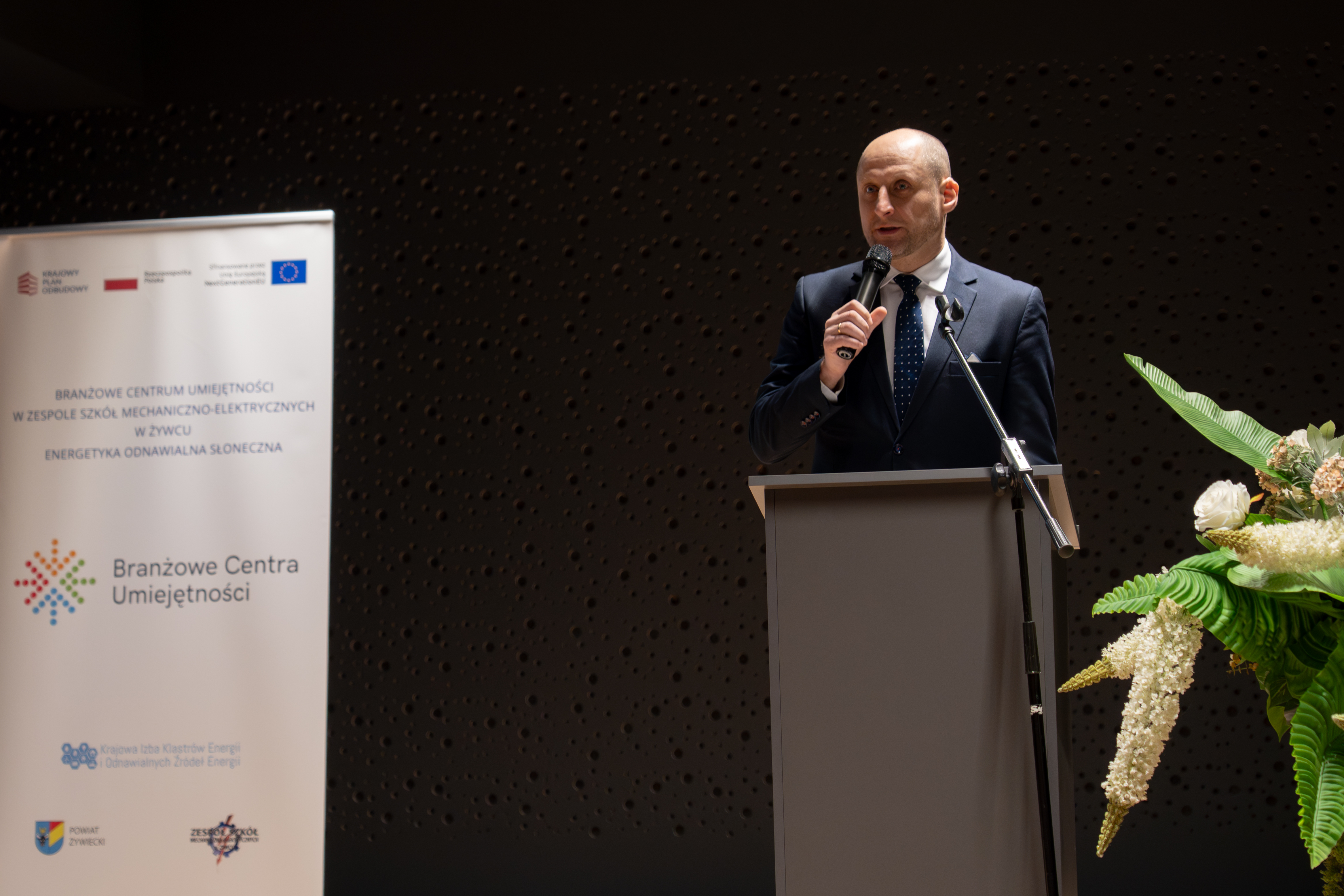 Konferencję oficjalnie otworzyła i przywitała gości Dyrektor Zespołu Szkół Mechaniczno-Elektrycznych w Żywcu, Pani Bożena Piątek, podkreślając znaczenie edukacji i współpracy środowisk lokalnych w procesie transformacji energetycznej. Uroczystość uświetnili swoją obecnością Starosta Żywiecki Adrian Midor oraz Dziekan Akademii WSB w Żywcu dr Dariusz Trojszczak.