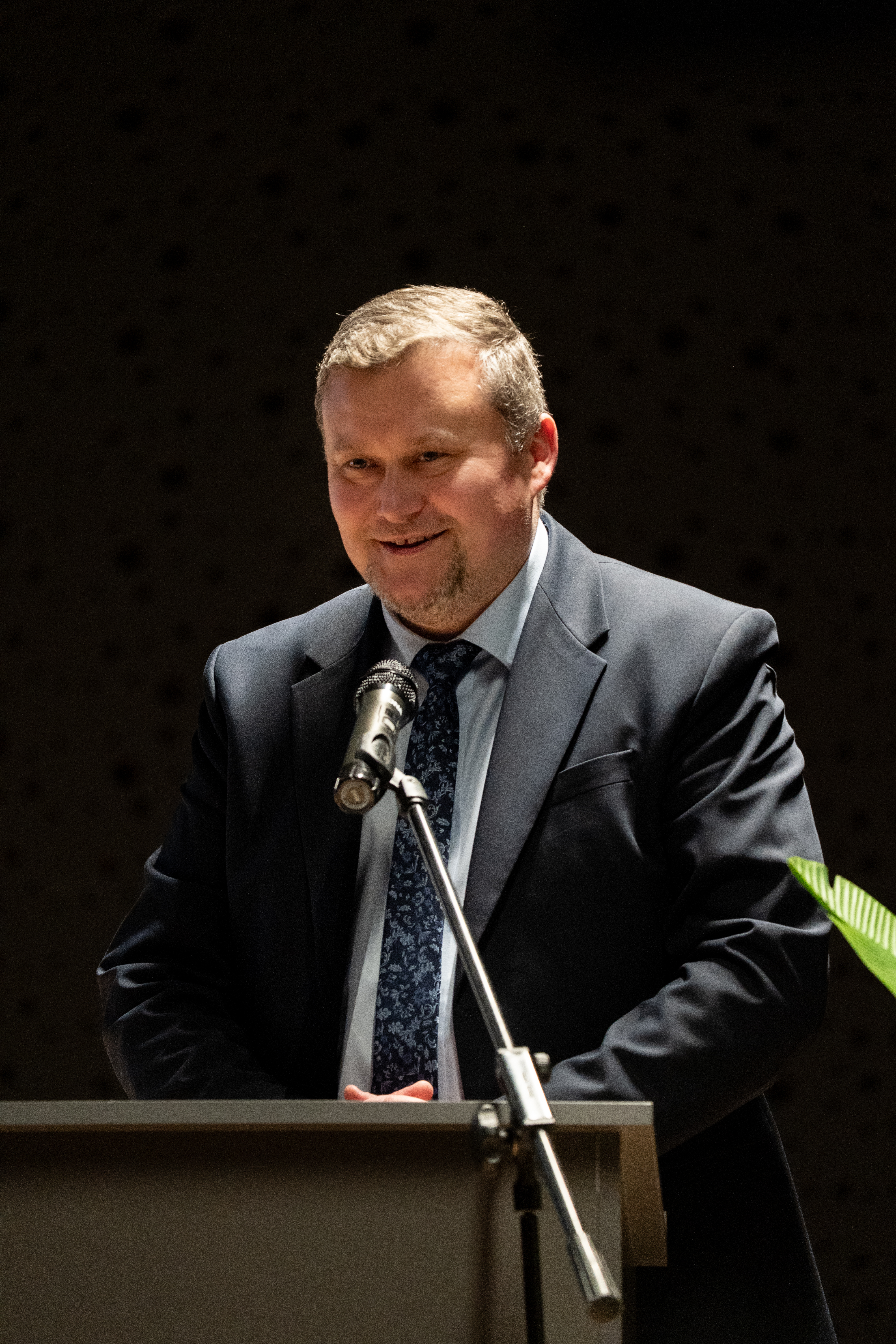 Dr Krzysztof Wrana przedstawił rolę transformacji energetycznej w strategii rozwoju województwa śląskiego, wskazując na jej znaczenie dla przyszłości regionu.