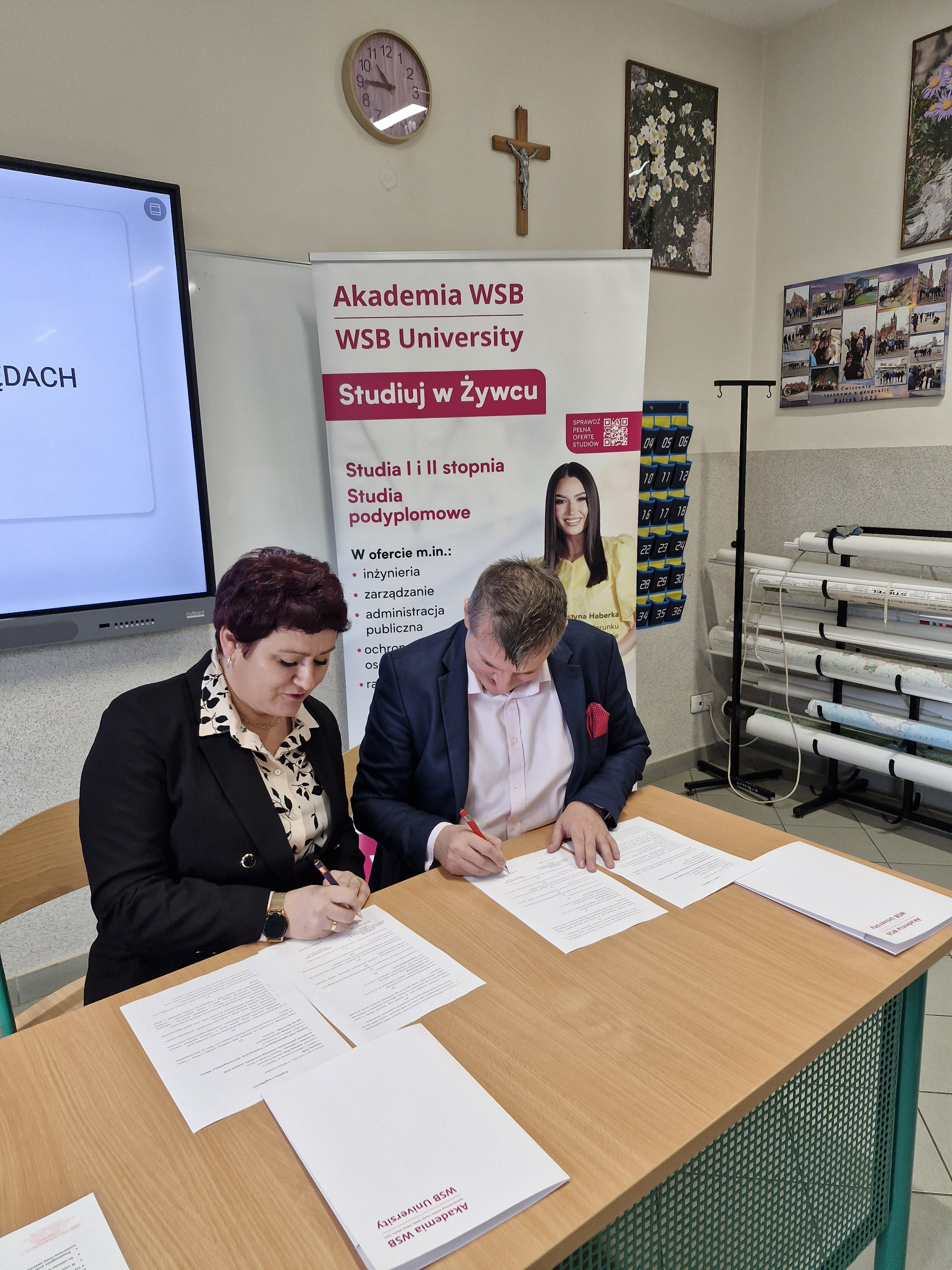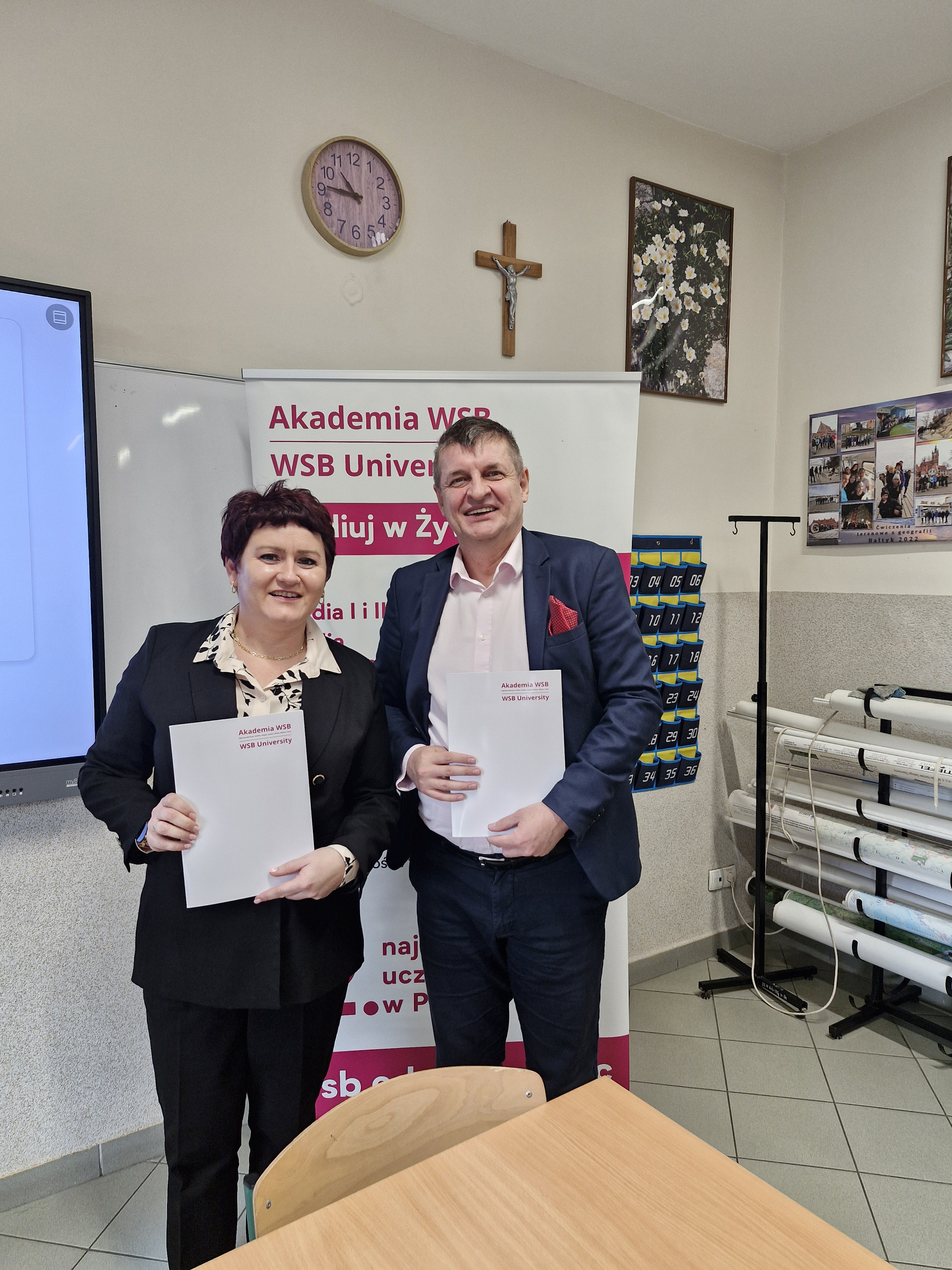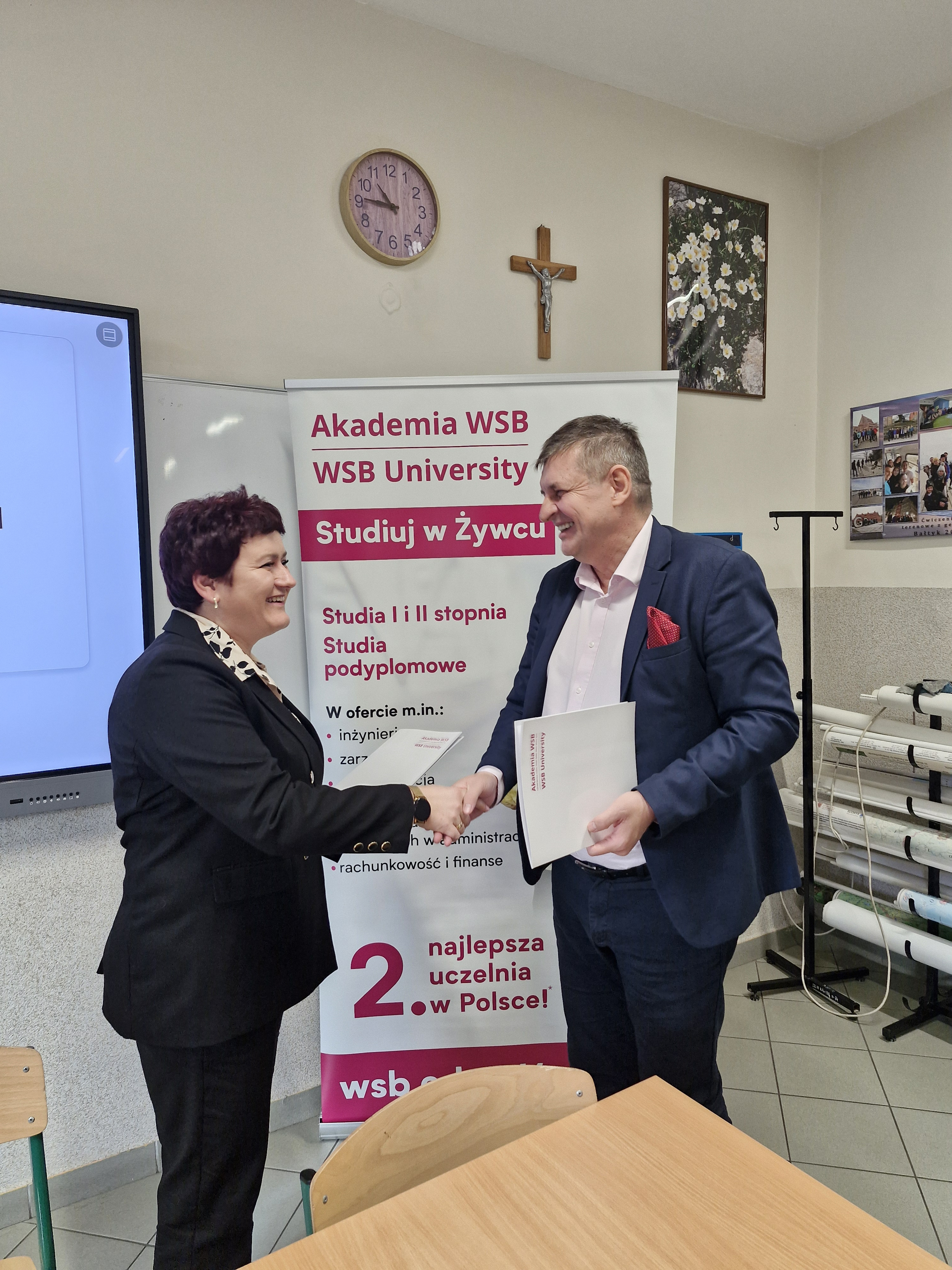Dokument został podpisany 12 lutego 2026 r. przez dra Dariusza Trojszczaka Dziekana Akademii WSB w Żywcu oraz mgr inż. Martę Zółty Dyrektora Zespołu Szkół Ogólnokształcących i Technicznych im. Marii Konopnickiej w Milówce. W spotkaniu uczestniczyła również Pani Paulina Cader-Kania – Dyrektor ds. operacyjnych Akademii WSB w Żywcu.
