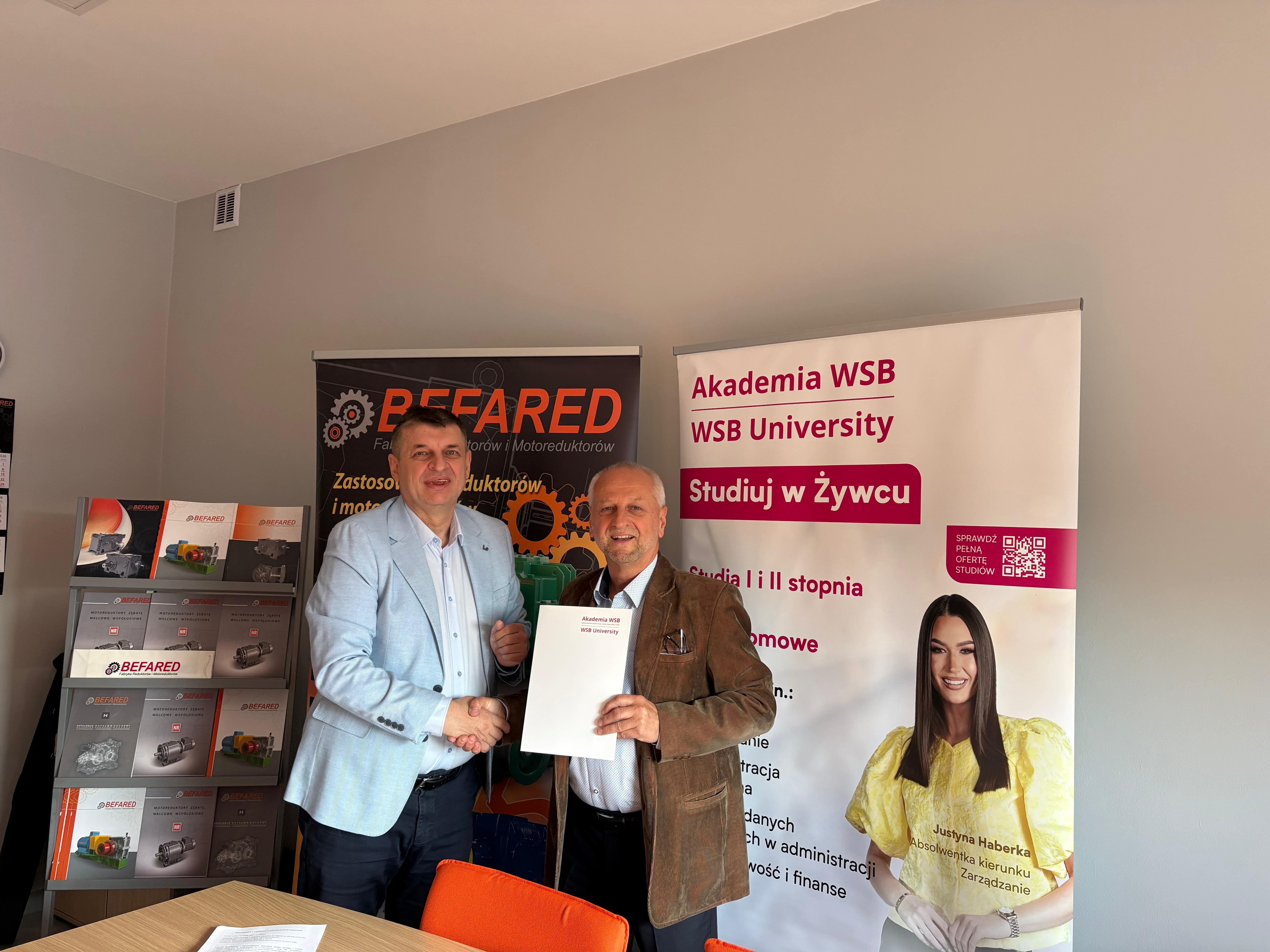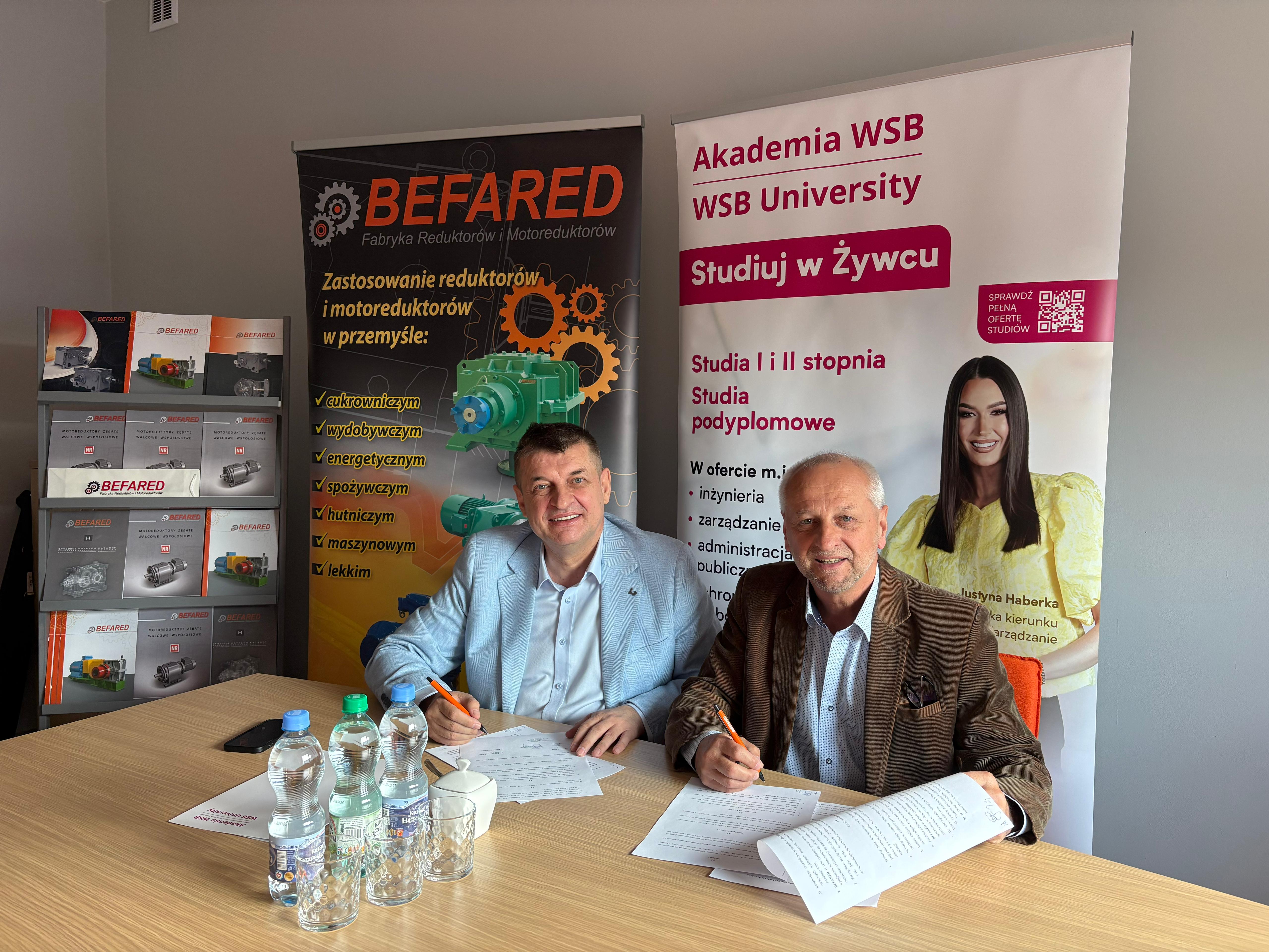 Umowa została podpisana przez Dziekana Akademii WSB w Żywcu, dra Dariusza Trojszczaka, oraz Członka Zarządu firmy Fabryka Reduktorów i Motoreduktorów BEFARED S.A. z siedzibą w Bielsku-Białej Pana Janusza Bączka.