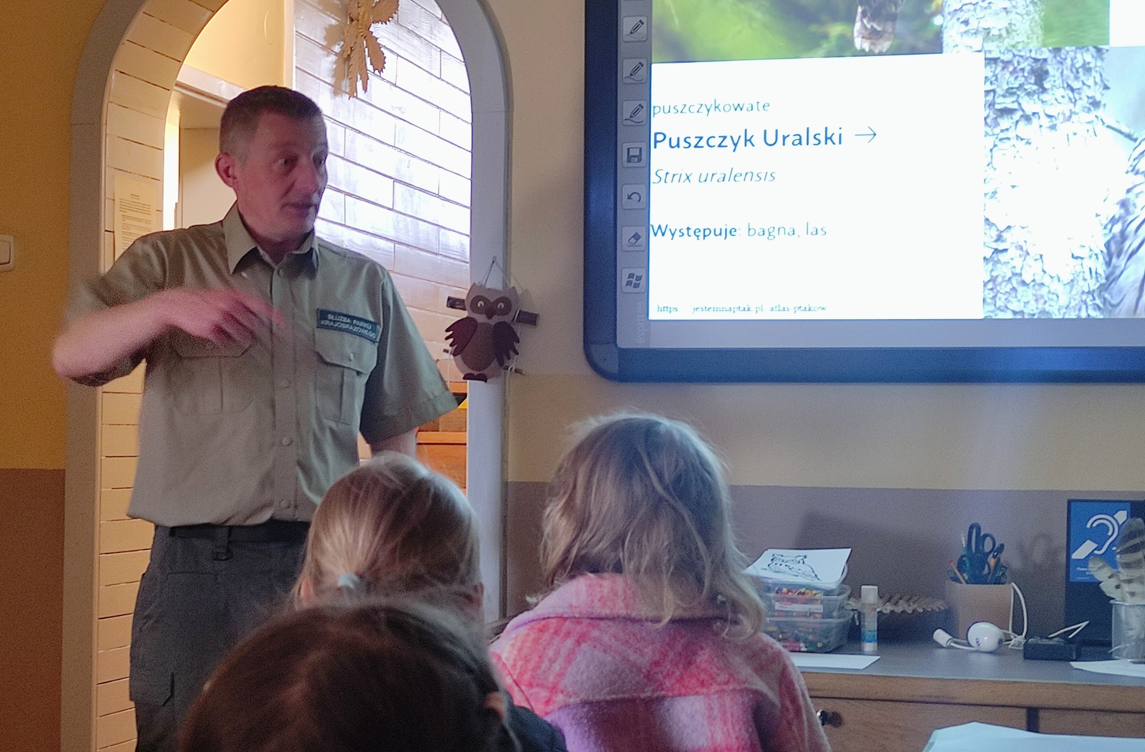 Spotkanie odbyło się w siedzibie Zespół Parków Krajobrazowych Województwa Śląskiego w Żywcu, a poprowadził je Pan Piotr Dziki. Tematem zajęć były sowy – ich zwyczaje, tajemnice oraz rola w przyrodzie.
