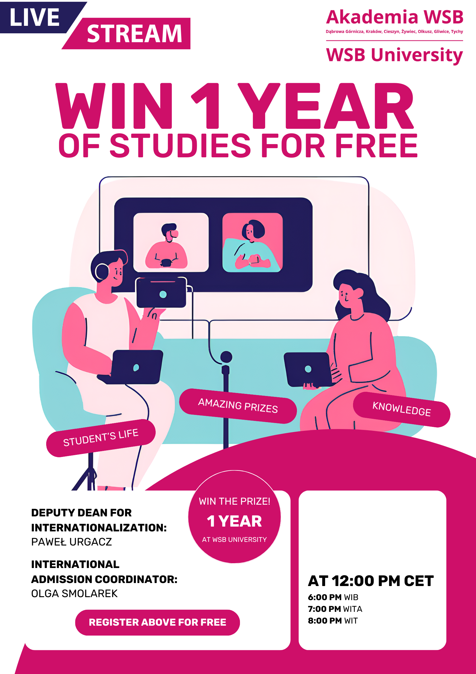 Join us for our Virtual Open Days 2024 and explore the opportunities that await you at WSB University. This is your chance to learn about our academic community, admission process, and the exceptional support we offer to help you succeed from people who are creating the WSB University.