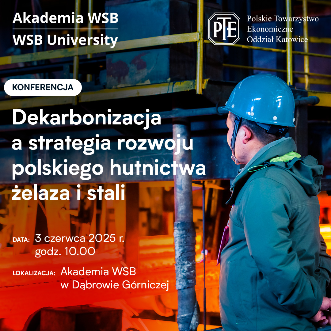 Mamy zaszczyt Państwa zaprosić do udziału w konferencji pt. „Dekarbonizacja a strategia rozwoju polskiego hutnictwa żelaza i stali”, która odbędzie się w dniu 3 czerwca 2025 r. w godzinach 10:00 - 13:00 w siedzibie Akademii WSB w Dąbrowie Górniczej.