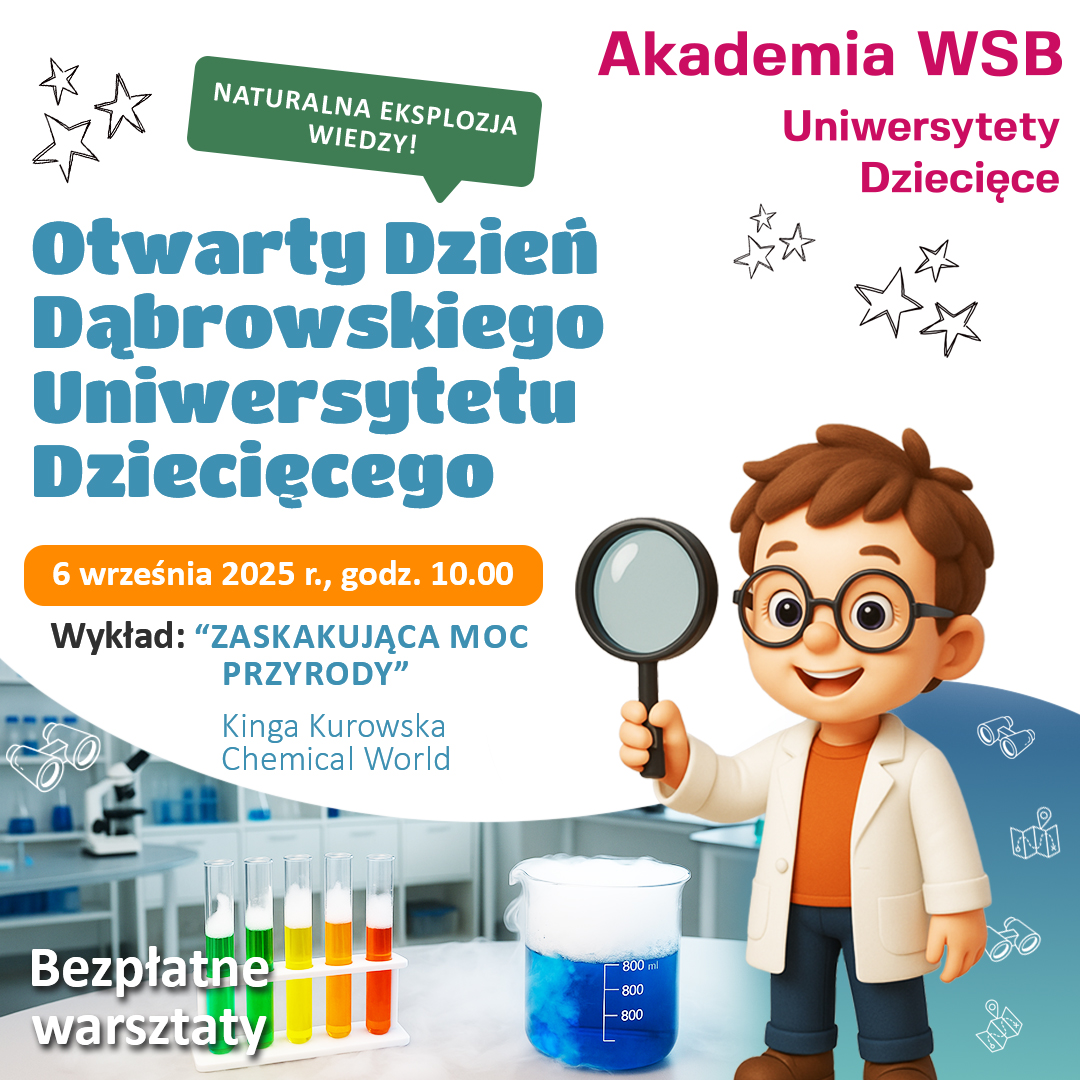 Już w sobotę, 6 września 2025 r., o godz. 10:00 serdecznie zapraszamy wszystkie dzieci w wieku 6–12 lat na Otwarty Dzień Dąbrowskiego Uniwersytetu Dziecięcego – wyjątkowe wydarzenie, podczas którego nauka spotyka się z dobrą zabawą.